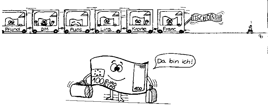 Die Währungsunion ist bereits mit der Fixierung der Wechselkurse und Aufnahme der Tätigkeit der Europäischen Zentral-bank in Gang getreten. D.h. nicht, daß der EURO die D-Mark sofort ablösen wird. Der EURO soll zu Beginn des Jahres 2002 zur Verfügung stehen. Bis spätestens zum 30. Juni 2002 sollen dann anstatt D-Mark und Pfennig Scheine bzw. Münzen EURO und Cent Scheine bzw. Münzen als Zahlungsmittel benutzt werden. Während dieser Zeit sollen sowohl D-Mark Scheine und Münzen als auch Euro-Bargeld gesetzliches Zahlungsmittel sein. Ab dem 01. Juli 2002 ist der EURO spätestens alleiniges gesetzliches Zahlungsmittel. Damit ist der Übergang auf die neue Währung vollendet. Die nationalen Zentralbanken tauschen nationale Banknoten und -münzen auch nach dem 01.Juli 2002 noch um. Niemand ist jedoch dazu verpflichtet z.B. im Einzelhandel nach diesem Datum D-Mark entgegenzunehmen.